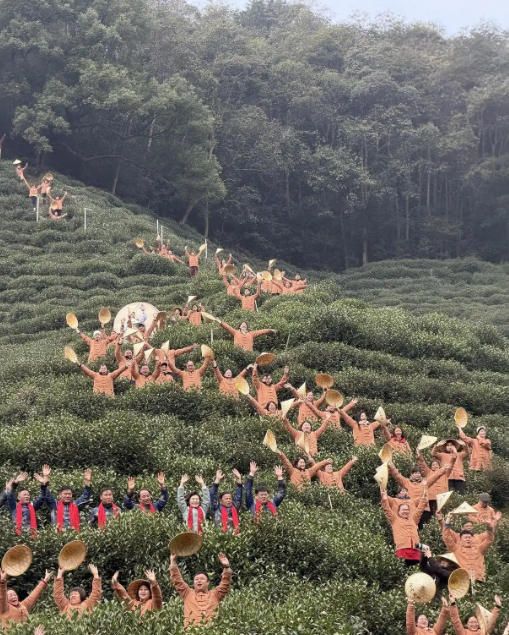 3月5日,杭州,二十四节气中的惊蛰,西湖龙井核心产区满觉陇马儿山举行“喊山祈福”活动,茶农呼唤“茶发芽大丰收”,为西湖龙井新芽祈愿丰收。(中国央视网)