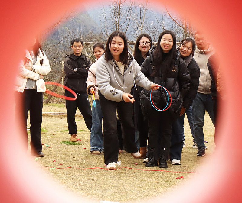 3月5日,贵州黔东南苗族侗族自治州岑巩县凯本镇,女职工在参加庆“三八”女子趣味运动会“套圈”比赛。(CFP)
