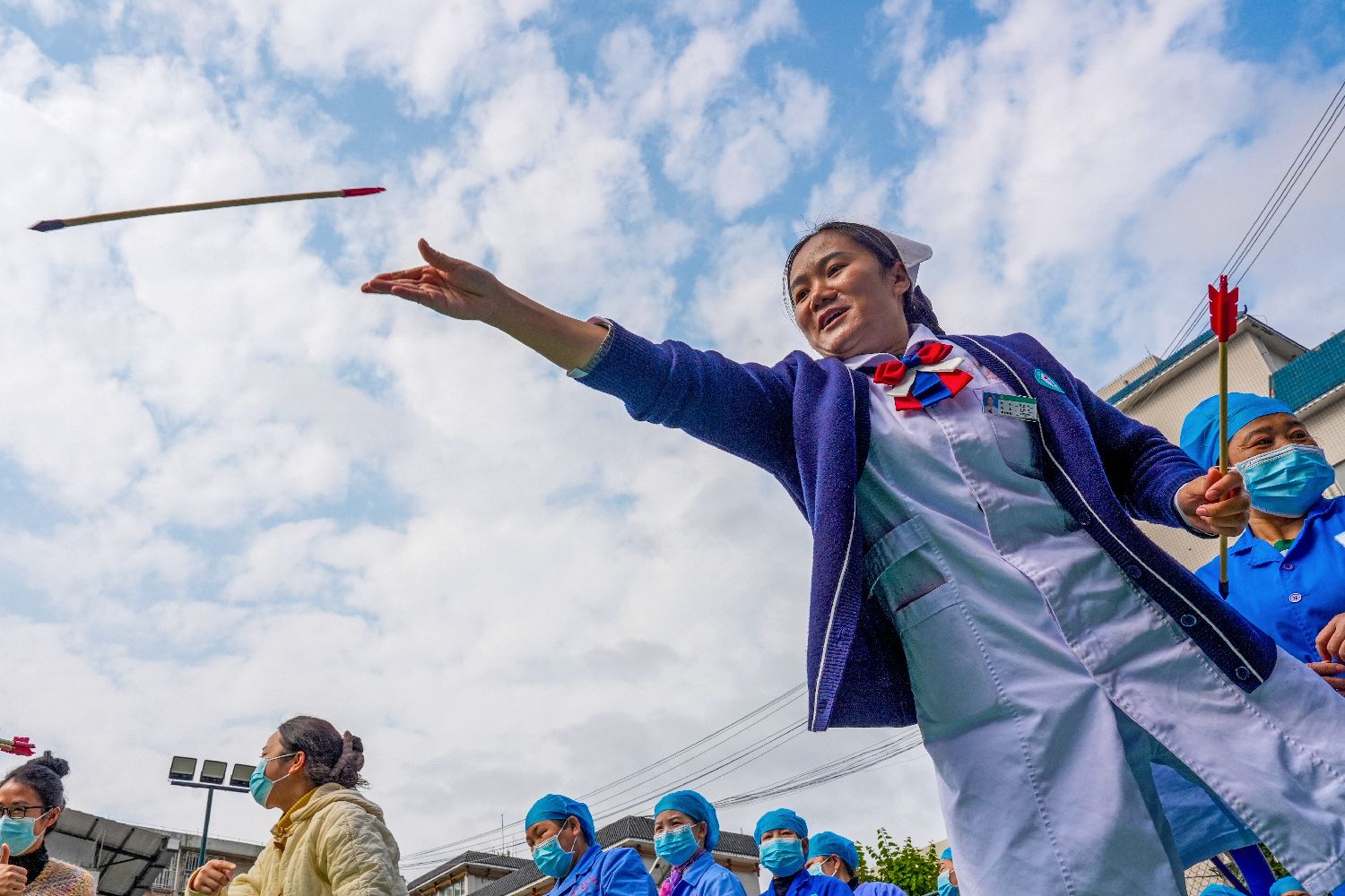 3月3日,广西柳州市融水苗族自治县人民医院举办“庆元宵迎三八”游园活动,员工、患者和家属们在丢沙包、投壶和抛圈等活动中,感受中华传统文化魅力,迎接“三八”妇女节。(中新社)