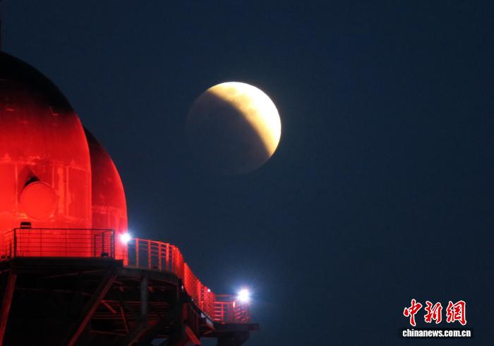 3月3日,北京首钢园,元宵节月全食的“红月亮”。中新网记者孙自法摄