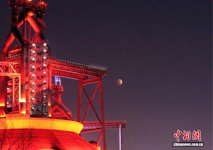 3月3日,北京首钢园,元宵节的月亮带食升起。中新网记者孙自法摄