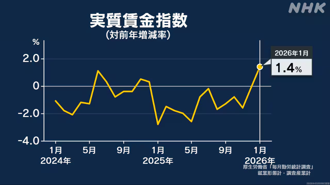 日本1月实际工资同比增长1.4% 时隔13个月转为正增长