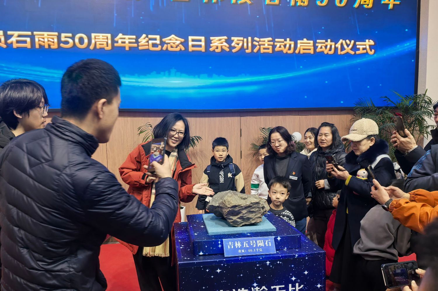 3月8日,吉林省吉林市,“吉林五号”陨石正式揭幕,吸引游客参观。(图/中新社)