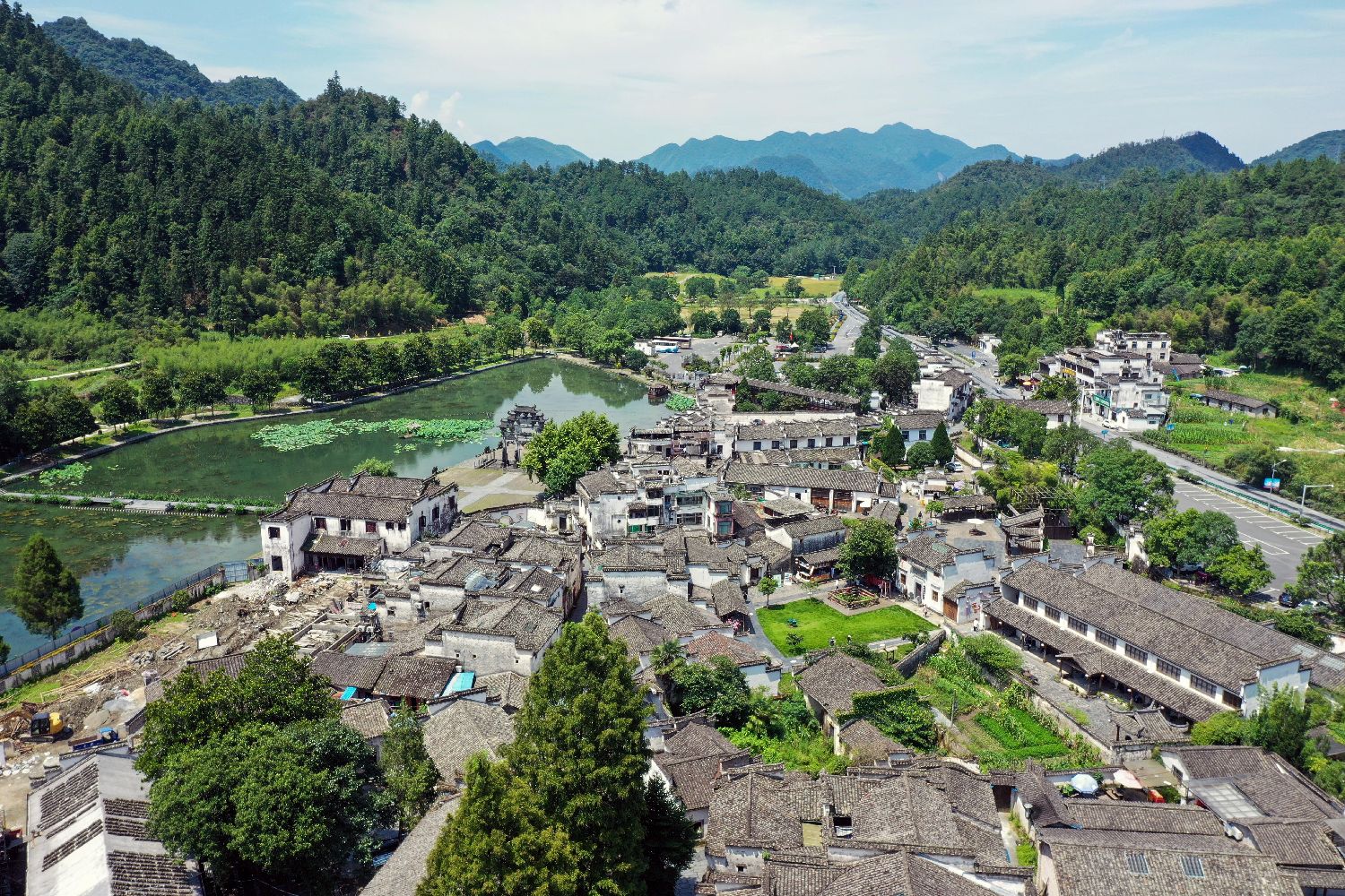 2021年7月16日,航拍安徽黟县西递古村落。(图/中新社)