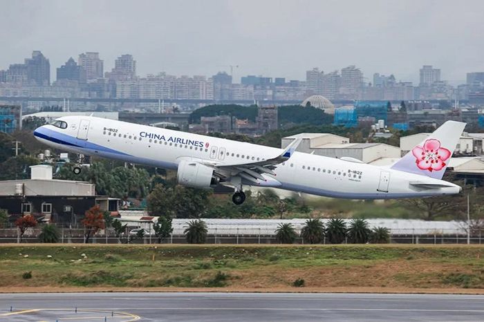 卓荣泰7日搭乘台湾“华航”编号B-18122的空中巴士A321neo客机,由台军松山指挥部直飞东京。图为该飞机资料图。(图/台北《联合报》)
