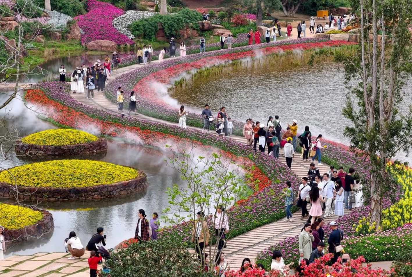 3月8日,正值周末,位于云南昆明的丰泽源植物园春意盎然,吸引众多市民和游客前来踏青赏花,乐享美好春日时光。(中新社)
