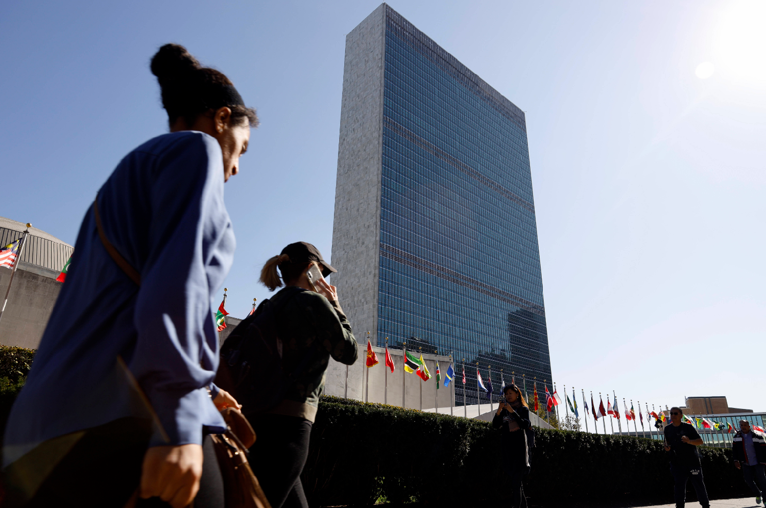 图为行人从联合国总部外走过。(图/新华社)