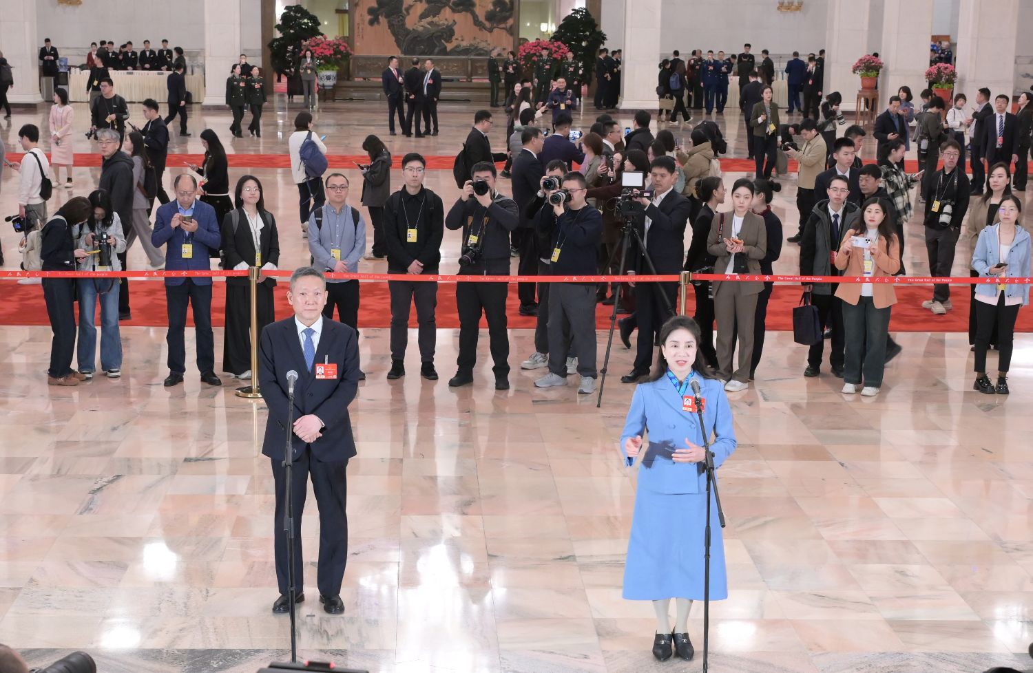 3月9日,十四届全国人大四次会议第二场“代表通道”集中采访活动在北京人民大会堂举行。图为活动现场。(图/中新社)