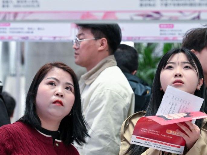 图为3月6日,宁夏银川,求职者在“巾帼有技·兴庆有岗”专场招聘会现场查看岗位信息。(新华社)