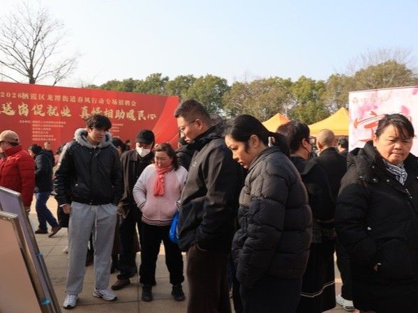 图为3月7日,江苏南京,龙潭街道以“春风送岗促就业、真情相助暖民心”为主题,成功举办2026年春风行动专场招聘会。(南京中国江苏网)