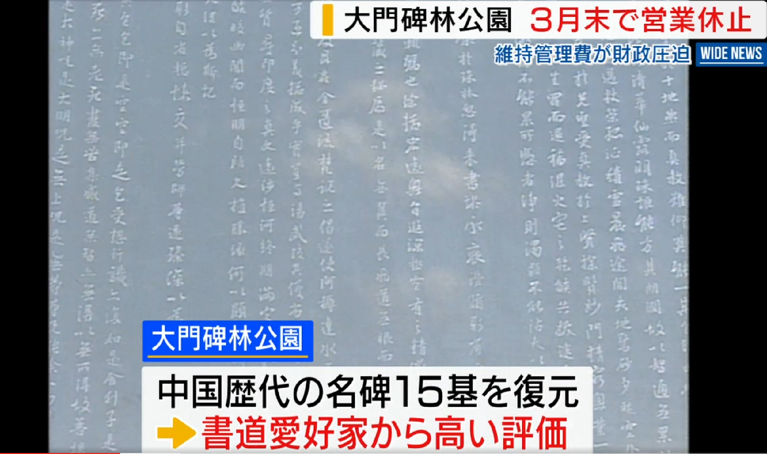 坐落于山梨县市川三乡町的“大门碑林公园”,将于3月底停止收费区域的运营。
