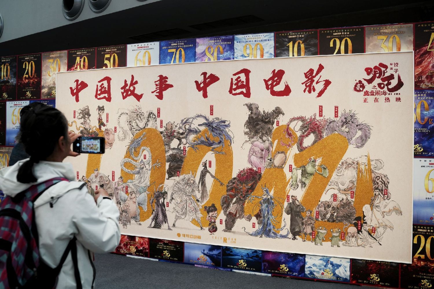 2025年4月18日,电影《哪吒之魔童闹海》破亿手绘海报展在第十五届北京国际电影节郎园Station分会场开展。(图/中新社)