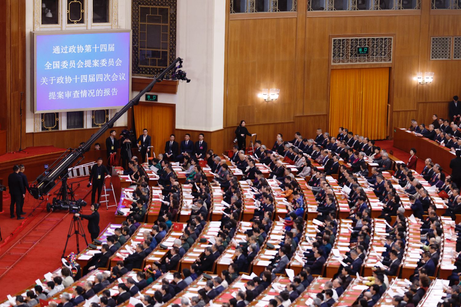 3月11日,全国政协十四届四次会议在北京人民大会堂举行闭幕会。(图/中新社)