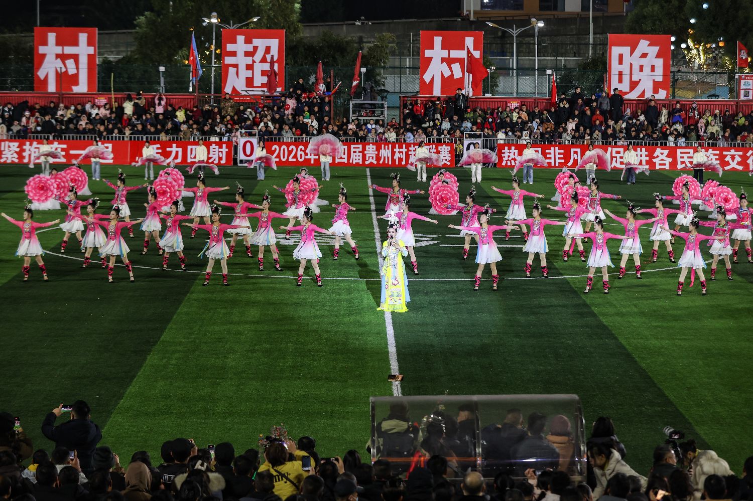 2026年1月2日,第四届贵州村超联赛开幕式暨村超村晚上的侗族歌舞表演。(图/中新社)