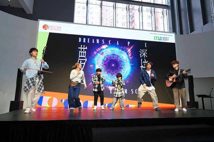 “香港流行文化节2026”节目简介会11日在东九文化中心举行。图为开幕节目《梦之深境》策划人、第43届香港电影金像奖最佳原创电影音乐得奖者兼二胡演奏家朱芸编(左一)与其他表演嘉宾演出音乐会选段。(图/香港新闻网)