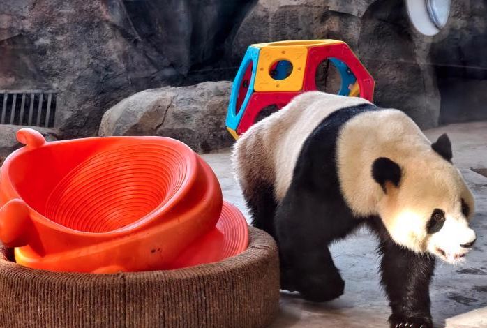 国宝萌动边城 乌鲁木齐水上乐园大熊猫馆打卡者络绎不绝