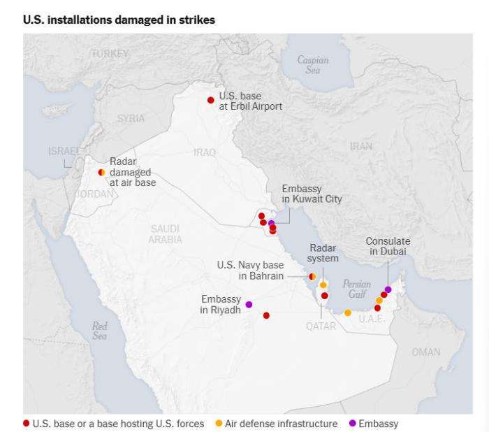 中新网3月11日电 据美国《纽约时报》11日报道,连日来,伊朗针对美国和以色列的袭击实施反击,向位于中东各地的美方目标发射无人机和导弹等。据统计,截至目前,至少已有17处美方设施遭到破坏,其中一些设施自冲突爆发以来多次遭到袭击。