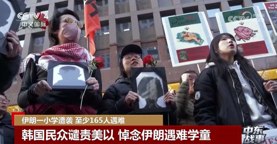 韩国民众谴责美以袭击学校 悼念伊朗遇难学童