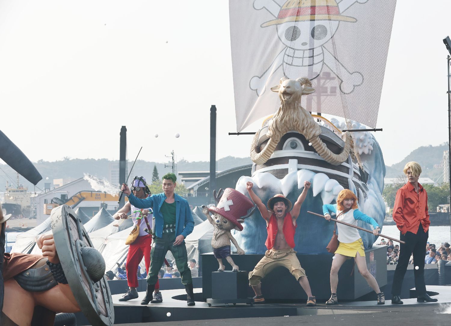 草帽海贼团全员集结舞台,黄金梅利号装置坐镇后方,热血氛围拉满。(香港中通社)