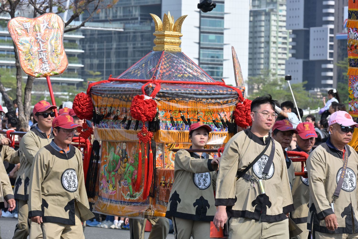 图为大游行上的妈祖护航。(香港中通社)