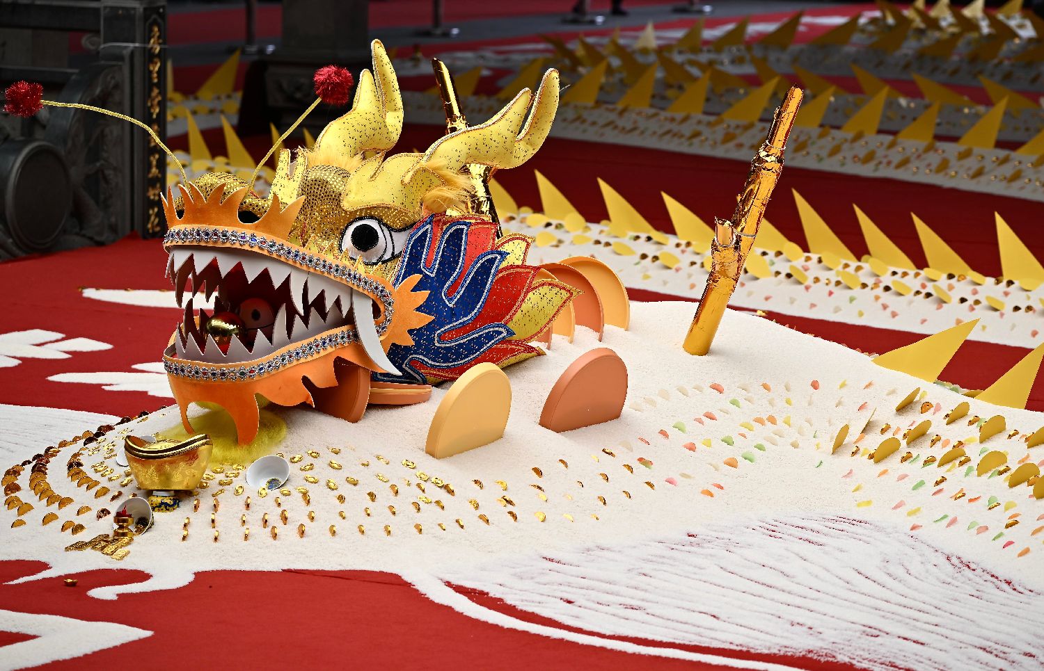 “往年,‘米龙’的龙头用米堆砌而成,此次活动的龙头则由甘肃的30余位绣娘花费三天三夜时间绣成,极具文化意义。”此次活动赞助商、陈升栋艺术馆馆长陈升栋表示:“我们希望通过这一创意,传承米龙习俗与拗九节文化,进一步营造爱老敬老的浓厚氛围。待二月二龙抬头之际,这8吨福米将悉数赠予乡邻,让福气浸润乡野。”