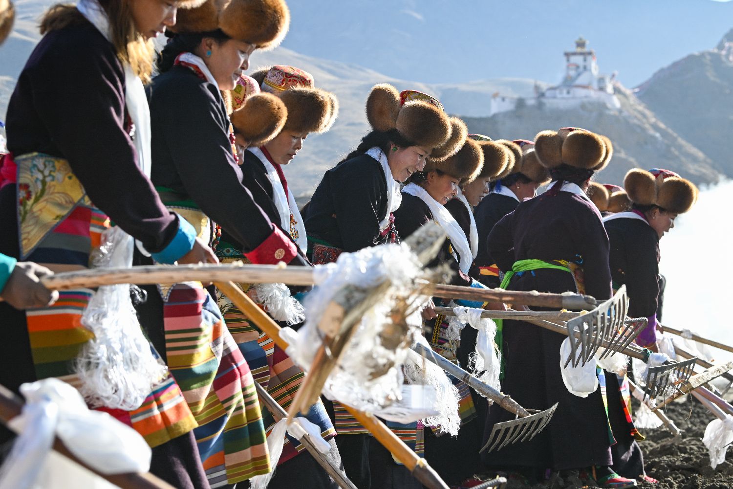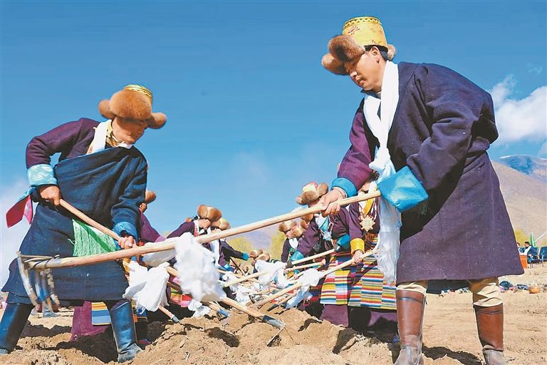 3月16日,西藏山南市乃东区门中岗社区春耕仪式现场。(中新社)