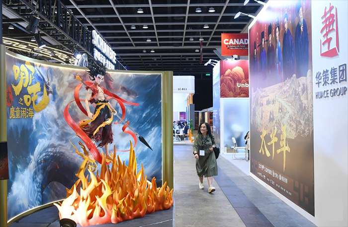 3月17日,参展商在香港会展中心广东馆推介影视产品。(图/新华社)