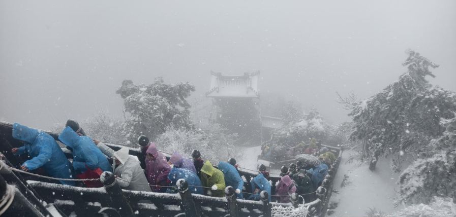阳春三月,武当山金顶迎来一场猝不及防的春日飞雪。