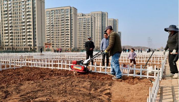 入春以来,在山东济南历城区唐冶街道一处“共享菜园”里,泥土翻飞。200多块菜畦纵横排列,每块约30平方米,市民们在自己的“一亩三分地”上,忙着春耕。菜园配有独立水龙头,地头插着醒目的编号牌。