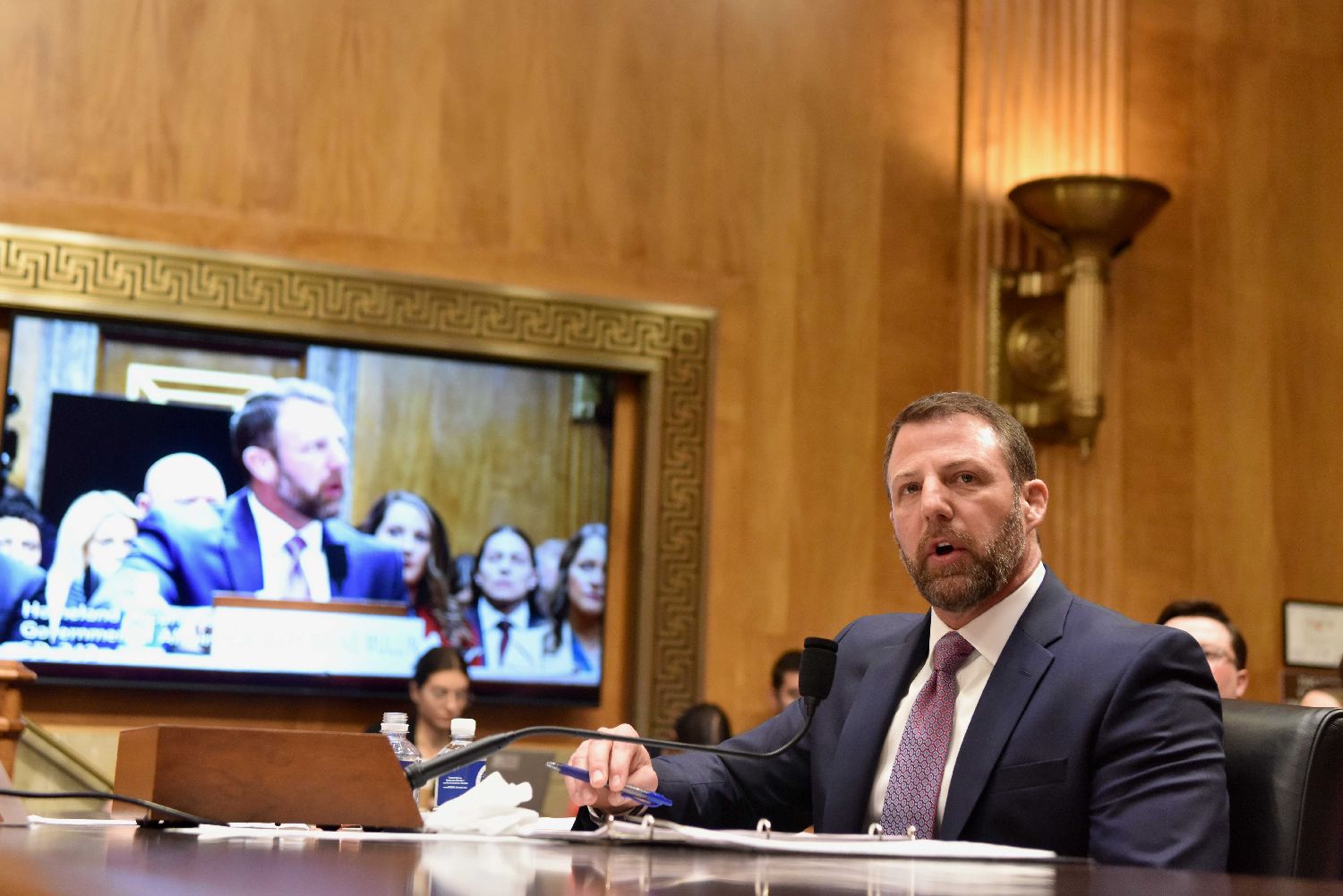 美国候任国土安全部长、国会参议员马林18日出席国会参议院国土安全和政府事务委员会提名听证会。