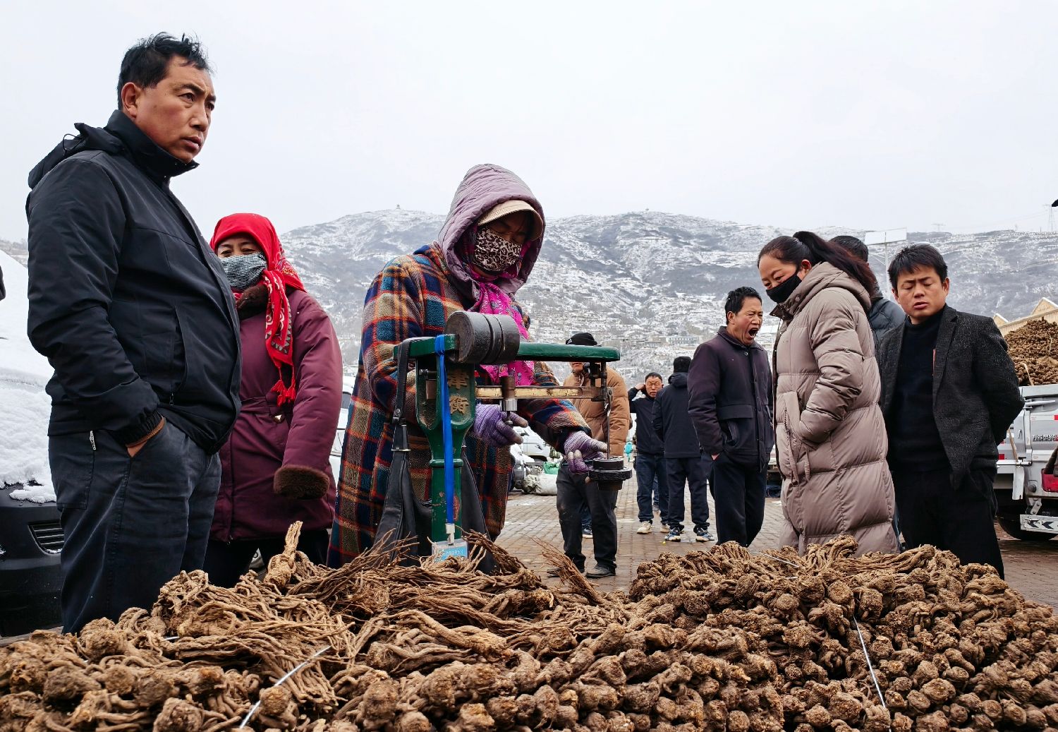 3月17日,位于甘肃定西市岷县的中国当归城内,药商称量中药材。(图/中新社)