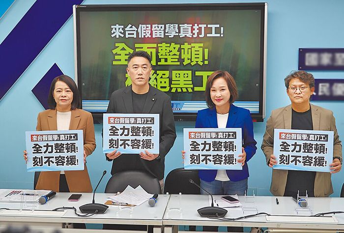 国民党党团近日举行记者会揭露当局“新南向人才政策”已严重变质,甚至成为填补台湾劳动力缺口的“变相外劳” 。(图/台北中时新闻网)