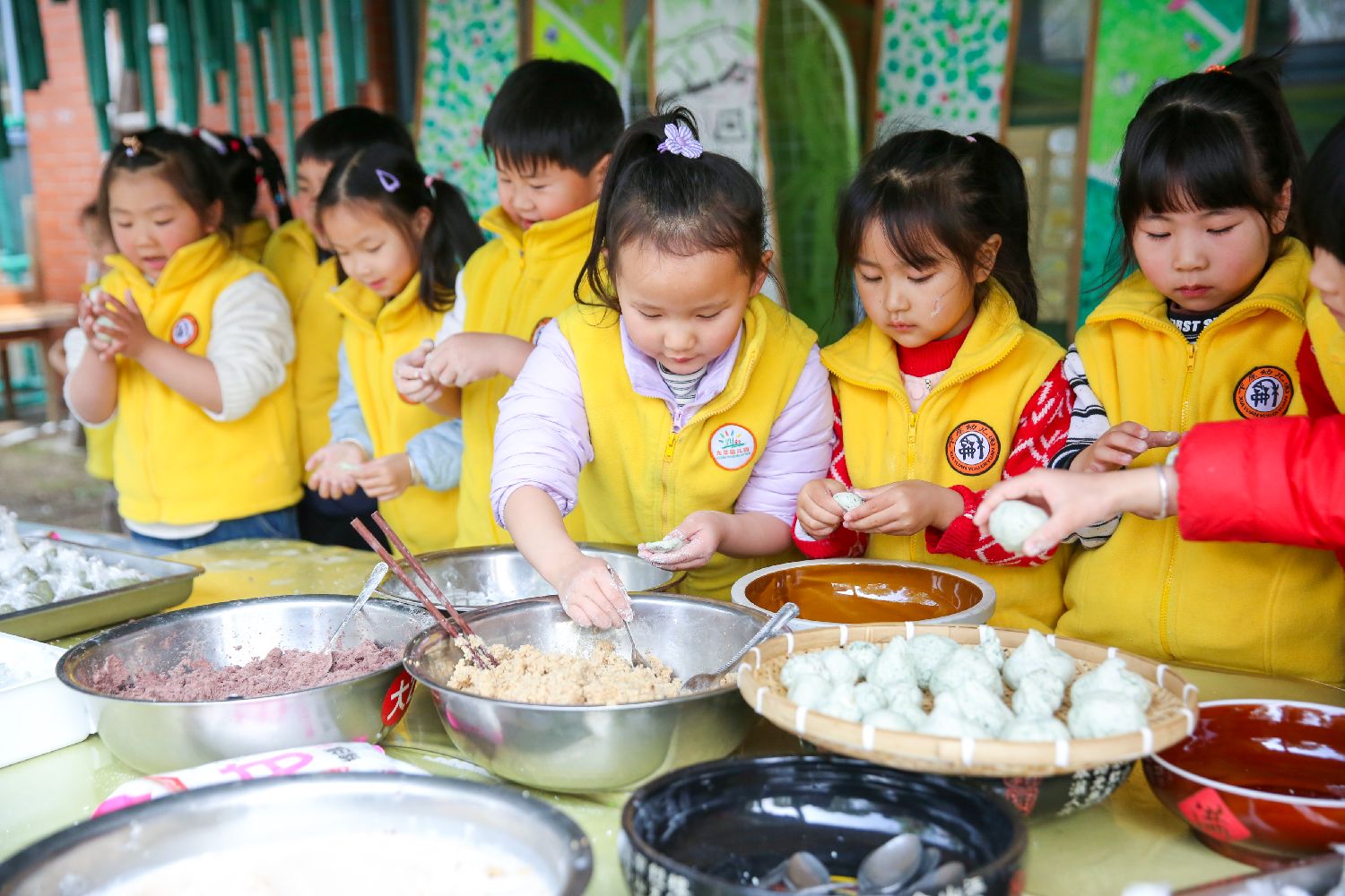 3月20日,江苏省如皋市下原镇下原幼儿园开展春日食育活动。孩子们在老师指导下制作春饼、青团,体验节气食俗与劳动乐趣。(中新网)