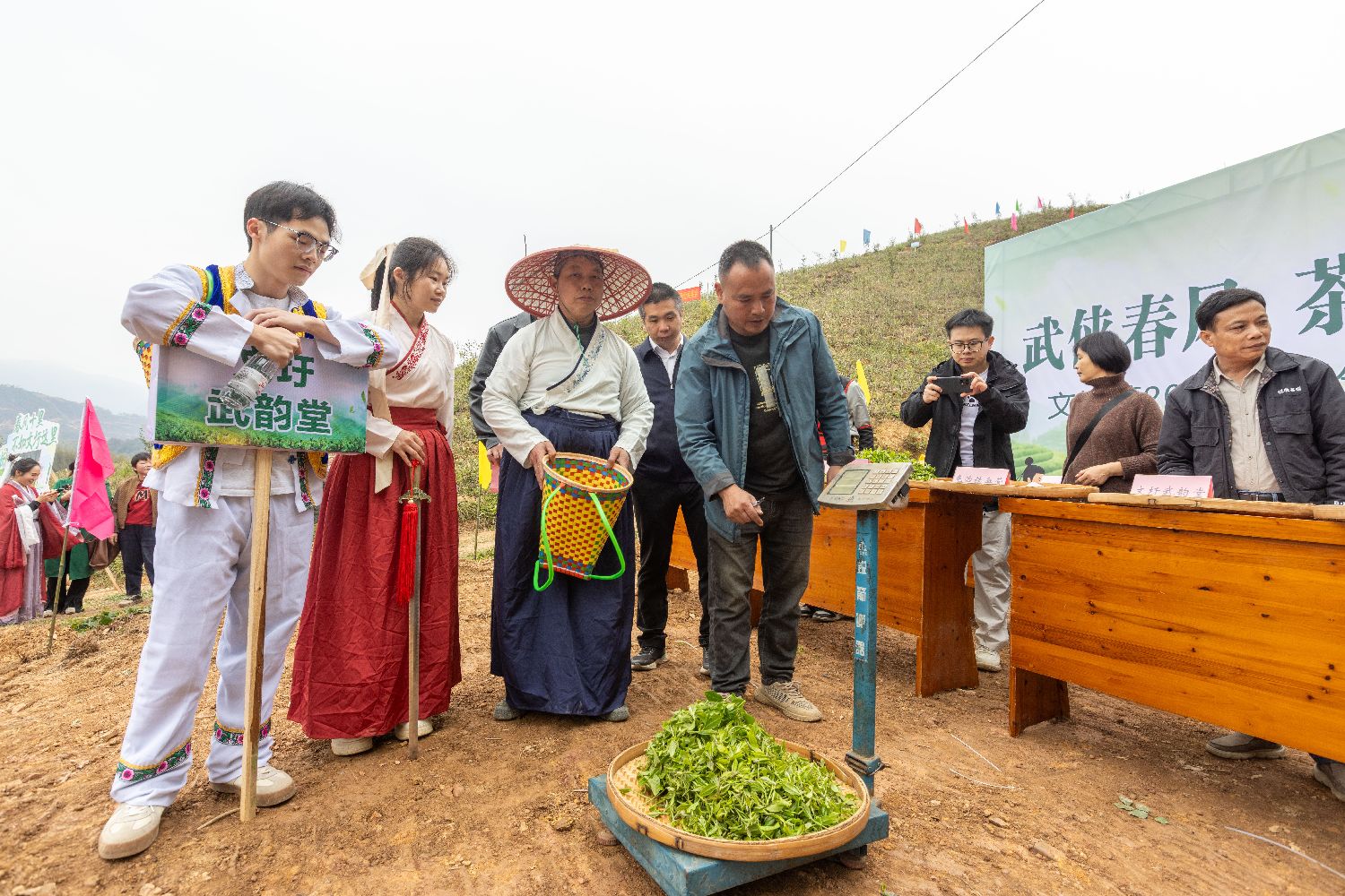 3月19日,春分前夕,广西梧州市蒙山县文圩镇在木护村古冷茶园举办2026年春分采茶活动,组织团体采茶比赛。通过鲜茶叶重量、品质得分、服饰加分、拍照发圈加分等计分,按总成绩排名,评出优秀奖、三等奖、二等奖、一等奖,分别给予活鸡、活鸭、活鹅等物质奖励。(中新网)