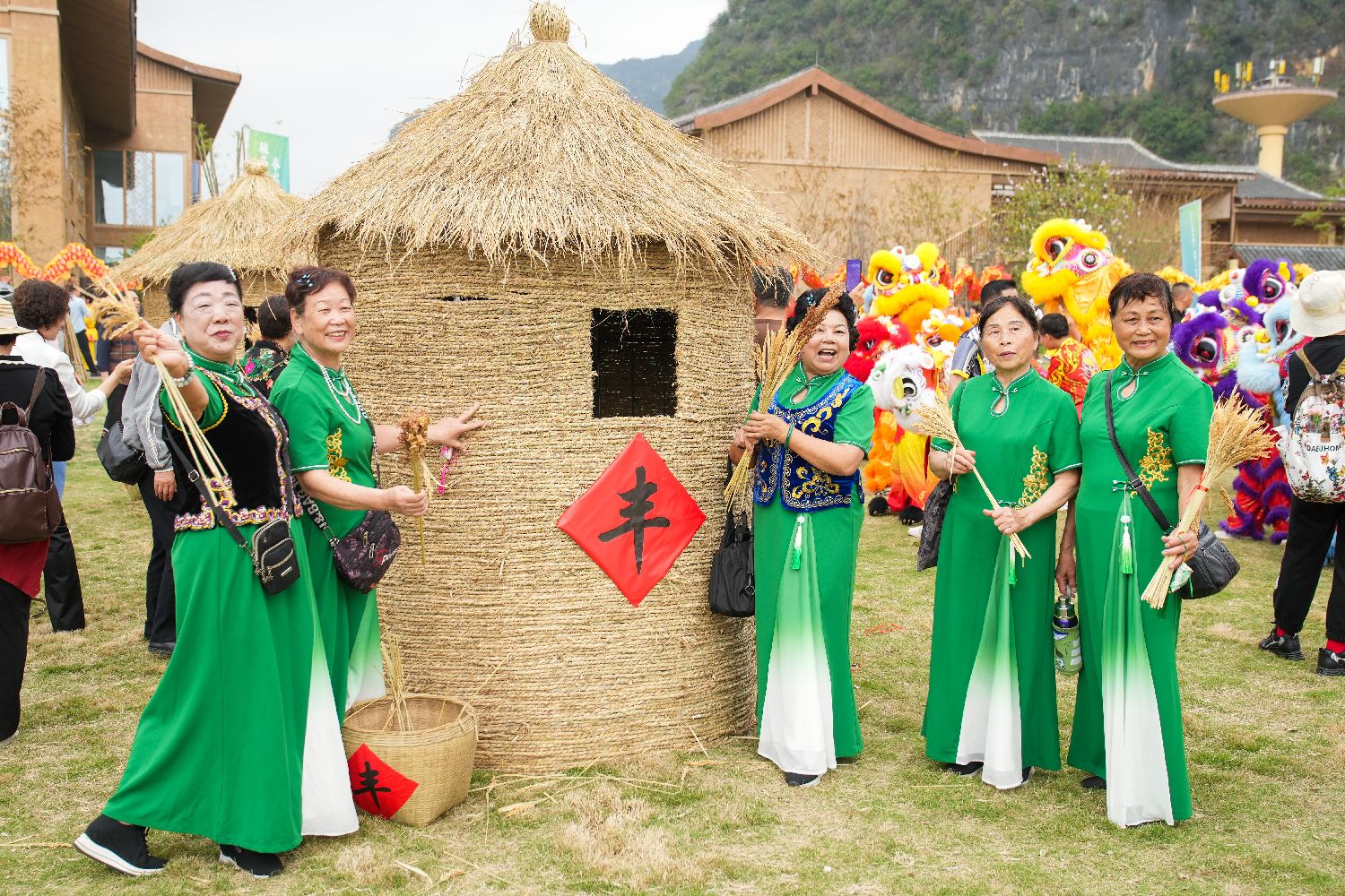3月20日,2026年中国(龙州)·越南(高平、谅山)边关“春龙节”在广西龙州县天琴壮寨景区启幕。现场通过一系列特色民俗展演活动,展现广西非遗与边关民俗底蕴,传递中越人民守望相助、亲如一家的深厚情谊。图为民众手持稻穗插入“粮仓”,祈愿五谷丰登、家国安康。(中新网)