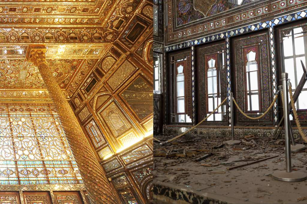 伊朗德黑兰古列斯坦王宫遭袭前后对比。图源:视觉中国