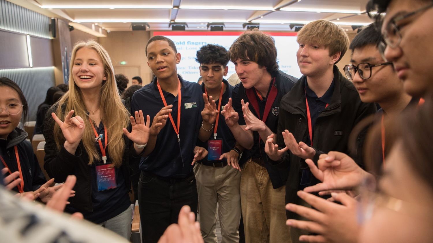 3月18日,在石家庄外国语学校,中美青少年进行游戏互动。(图/中新社)