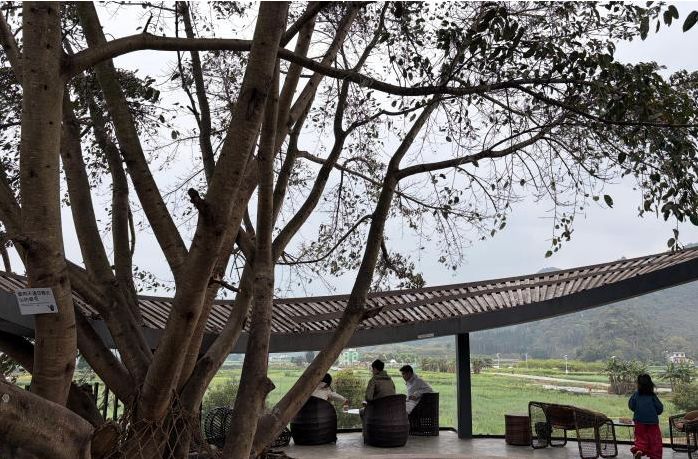 据了解,当地在改造过程中保留了原有建筑与风貌。村委会搬进闲置小学,原来的办公楼和院子变成了集民宿、咖啡店、面包店于一体的复合空间;曾经的厕所,经瓦片叠加与楼梯改造后,成为一处网红打卡地;村里的一个咖啡店环绕一棵大榕树而建,将精品咖啡引入田园景致,吸引不少追求松弛感的消费客群。