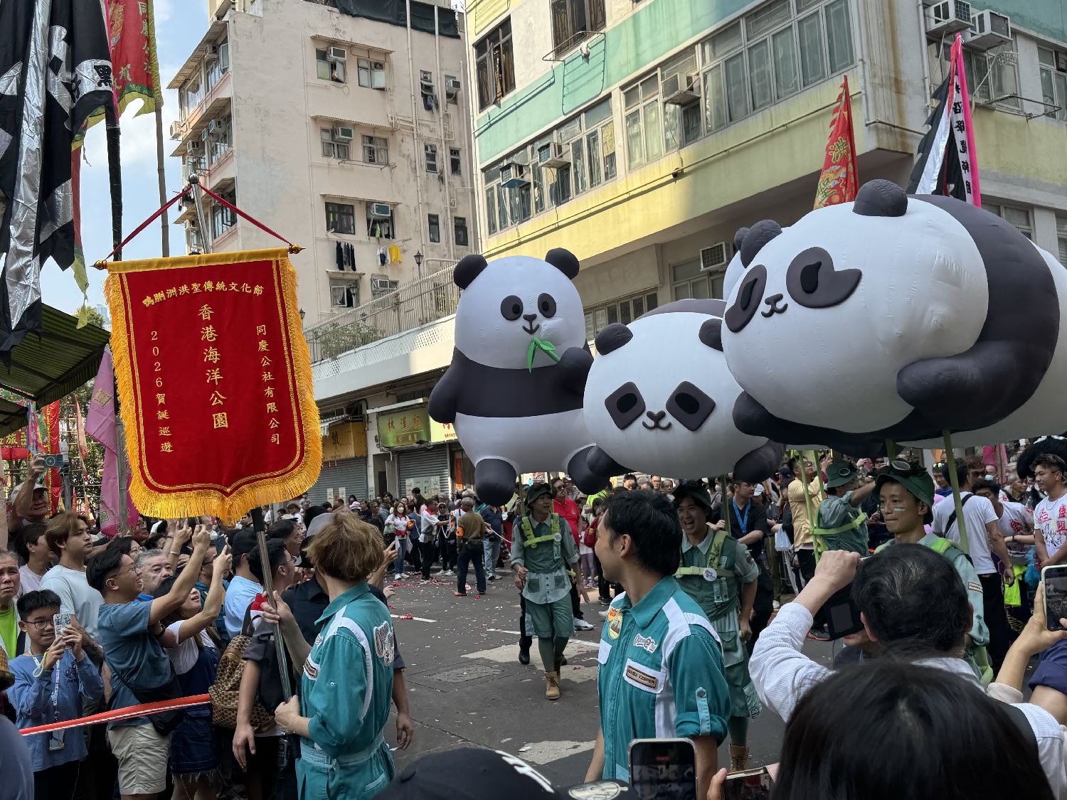 3月22日,大型贺诞巡游由鸭脷洲洪圣广场出发。(香港文汇网)