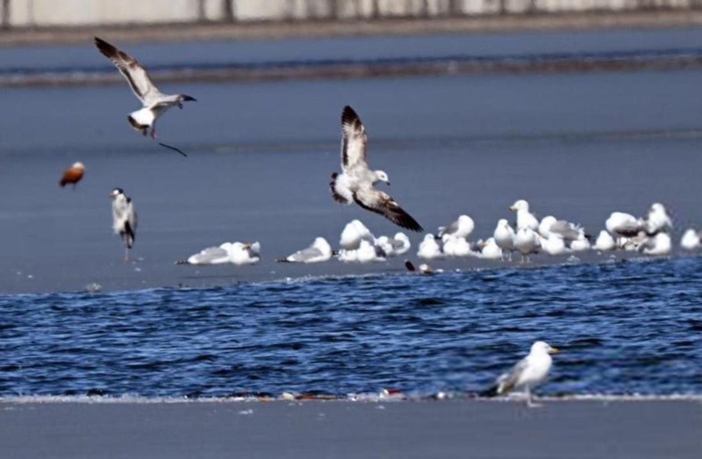 近日,沈阳市丁香湖水域迎来数百只迁徙野生鸟类,赤麻鸭、绿头鸭、斑嘴鸭、苍鹭、沙鸥等成群现身,停歇觅食。(中新社)