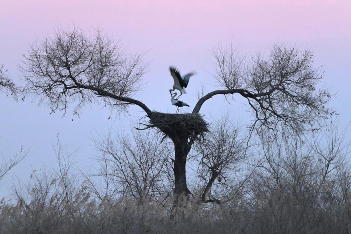这是3月22日在黑龙江省齐齐哈尔市克钦湖湿地拍摄的东方白鹳。(新华社)