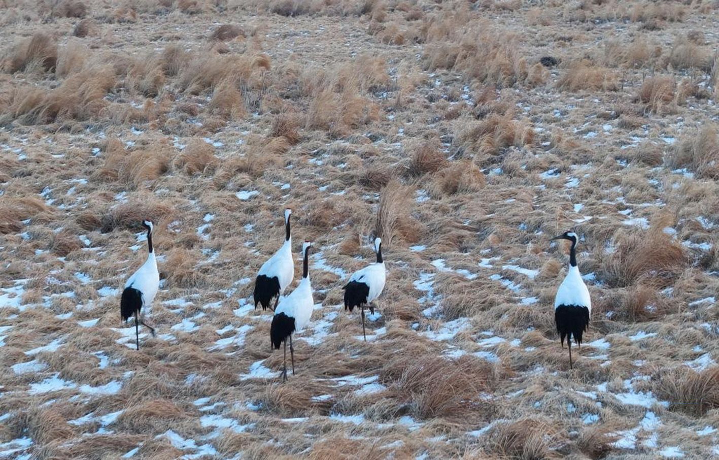 这是3月21日在黑龙江三环泡国家级自然保护区拍摄的丹顶鹤(无人机照片)。(新华社)