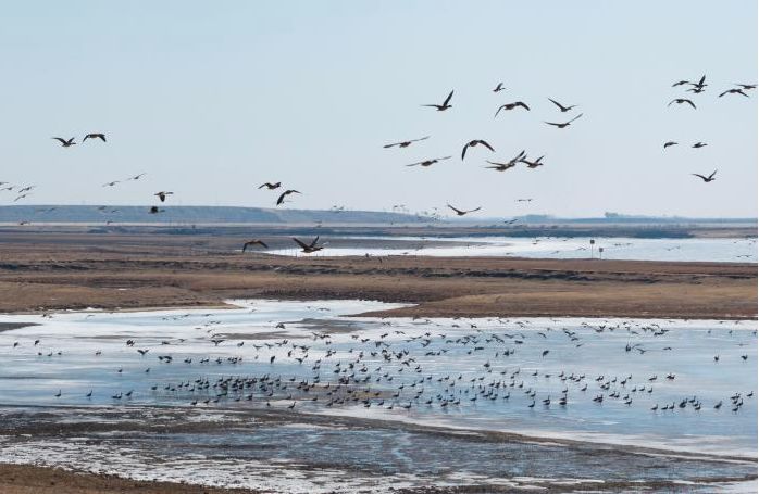 3月下旬,莫莫格湿地数千只豆雁回归。(图/中新网)
