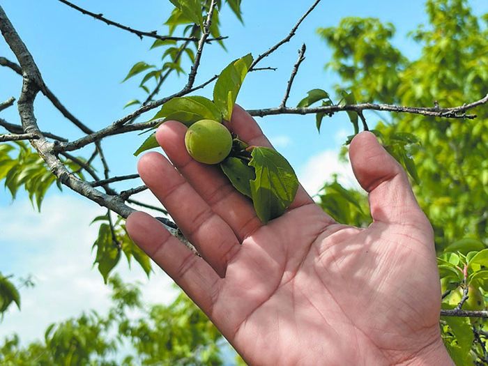 花莲主要青梅产区富里乡,也出现着果不良现象。富里乡农会总干事张素华说,今年结果率普遍不到三成,甚至有果园“1颗梅子都没长”,是罕见的迟发性农损。