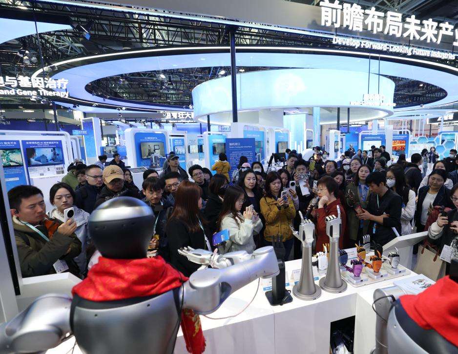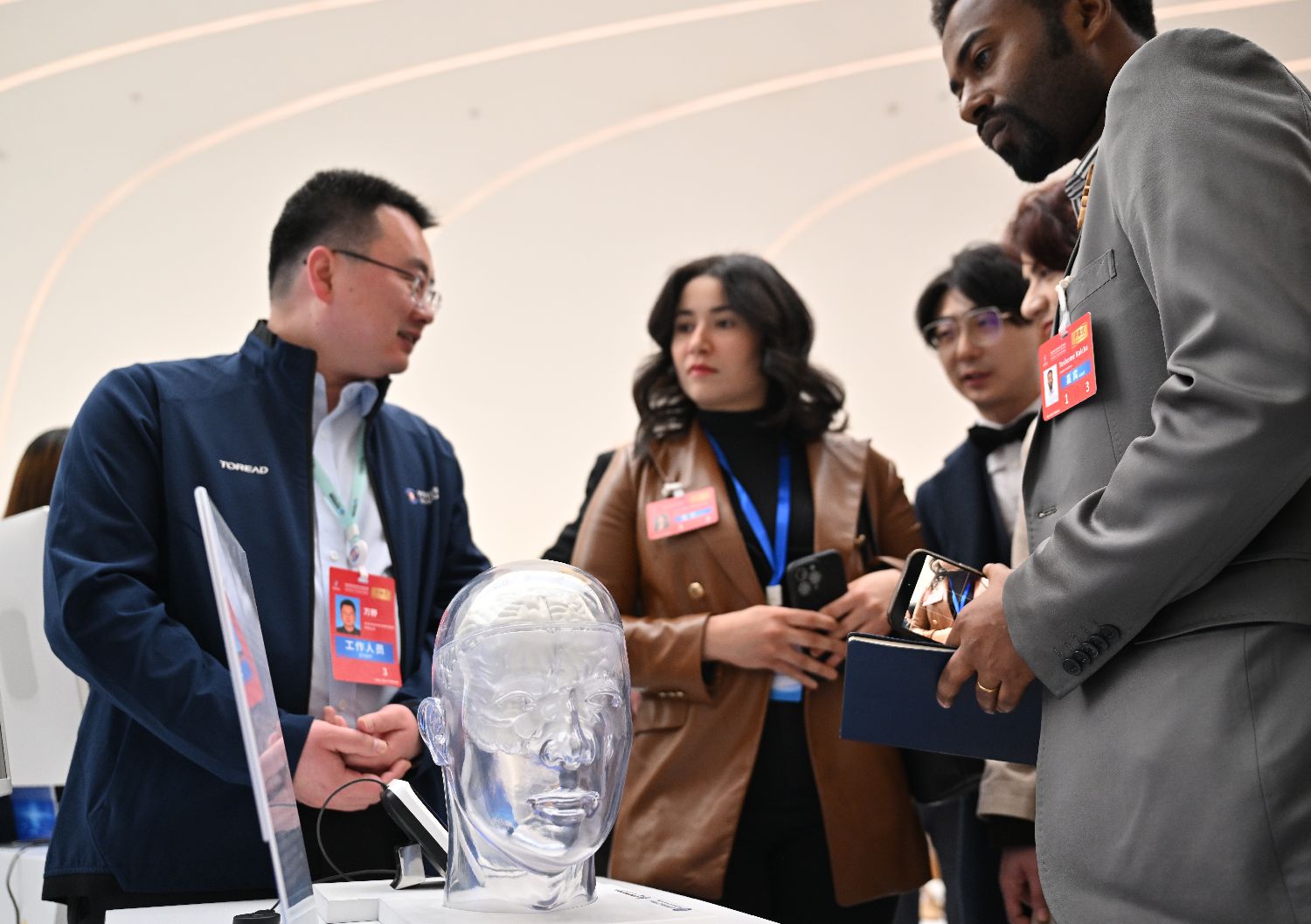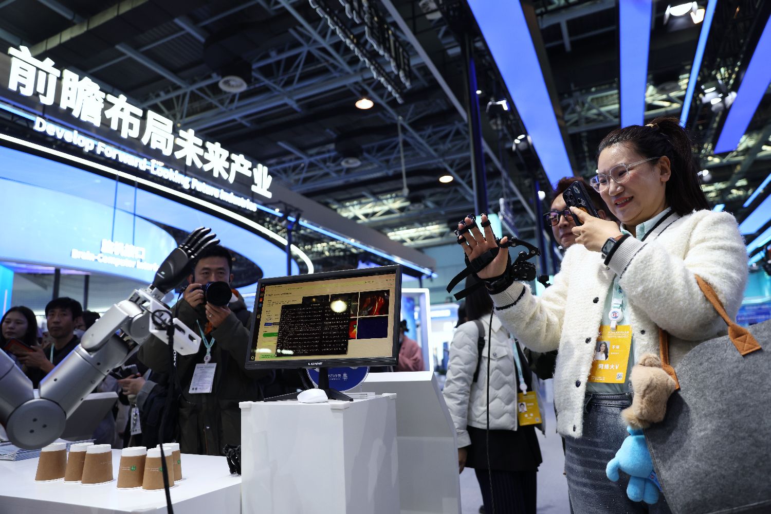 3月25日,“北脑一号”智能脑机系统吸引与会外籍嘉宾。(中新社)