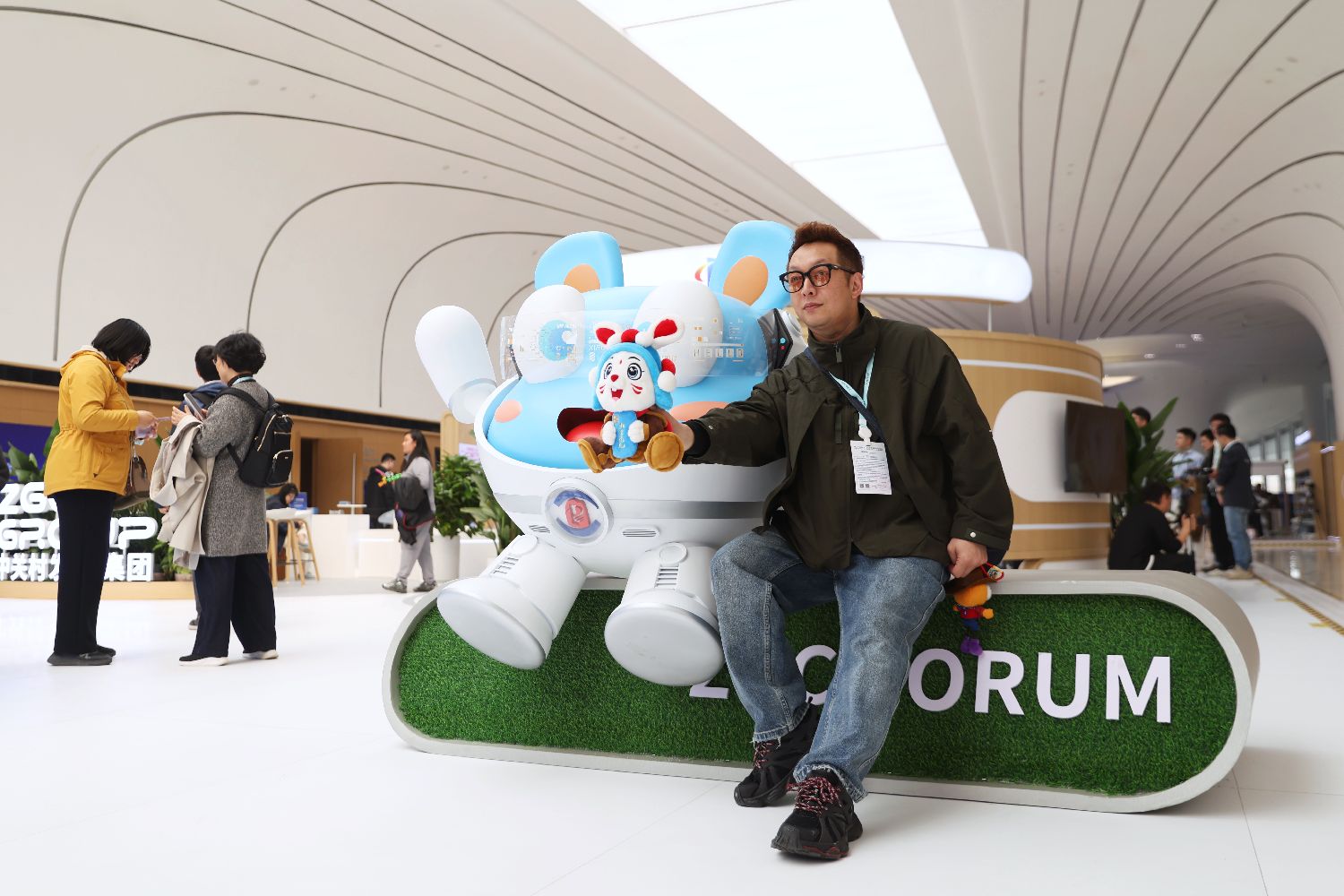 3月24日,在2026中关村论坛年会主会场内,参观者拍照打卡。(中新网)