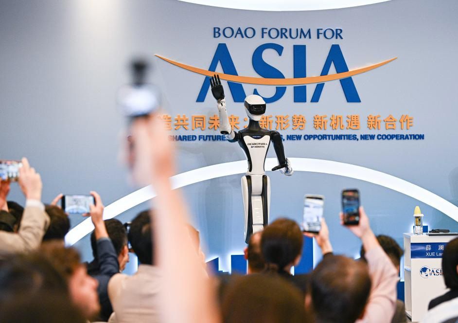 3月25日在博鳌亚洲论坛“人形机器人的进阶与飞跃”分论坛上拍摄的机器人。(新华社)