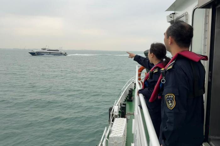 26日,厦金“小三通”航线船舶在改线后的航路通航。图为厦门海事局保障船舶按照新航路安全通航。(图/中新网)