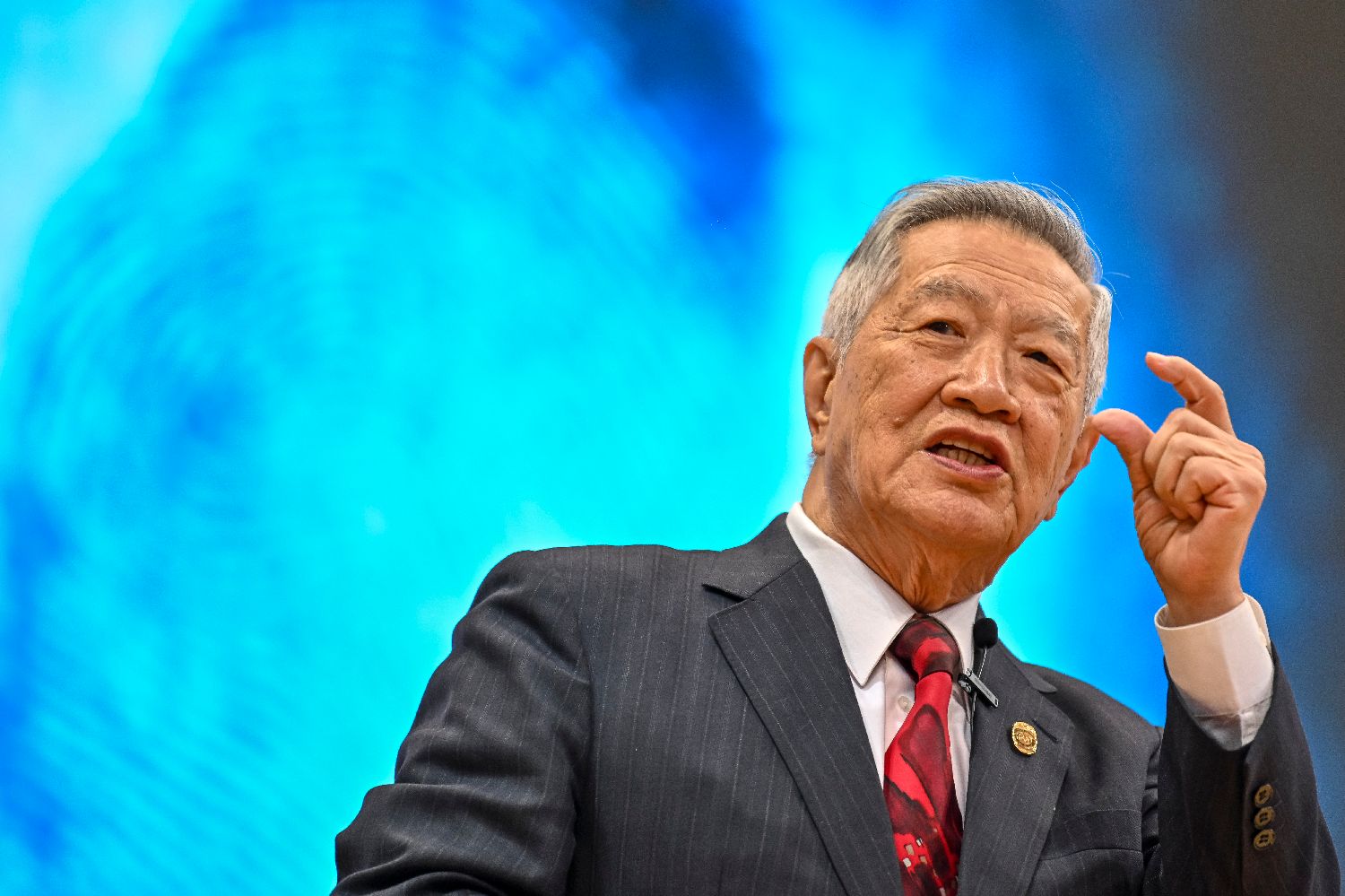 图为2023年12月22日,李昌钰为广州新华学院(东莞校区)的师生作“现代刑侦鉴识科学的演变和发展趋势——世界名案侦破剖析”专题讲座。(图/中新社)