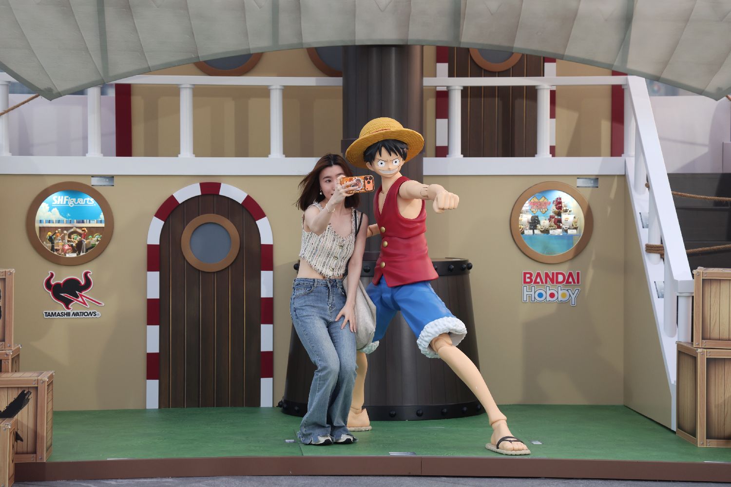 3月30日,市民游客在“海贼王”展区拍照打卡。3月27日起至5月5日,香港海港城与Bandai Namco Asia合作推出“Bandai Namco Asia Journey in Hong Kong”大型主题活动,汇集《机动战士高达》、《海贼王》、《拓麻歌子》、《超人》及《龙珠》五大经典动漫IP展区,于海运大厦不同位置重现多个经典场景,让市民游客能够近距离感受各大作品的独特魅力。(香港中通社)